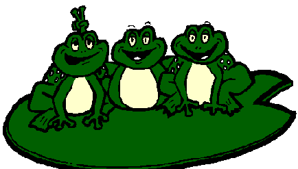| On James hopped, and hopped and hopped. Then there it was, the big pool. James had finally arrived. As day began to change to evening, the residents of the big pool all began to sing and move about. There were so many, and James didn't know anyone. In fact there were so many frogs, James couldn't hear just one, but a whole chorus singing loudly and constantly. | |
